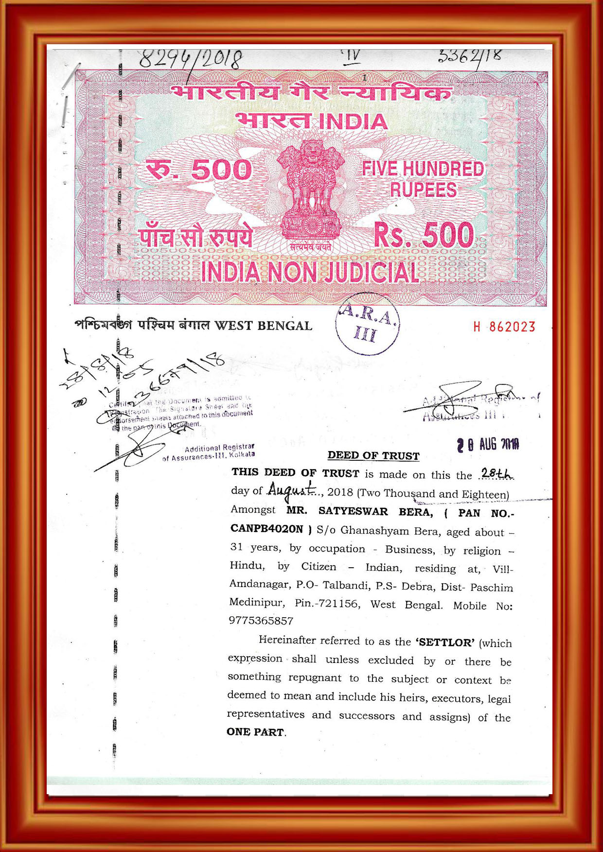 No formal deed or any other writing is necessary to constitute a charitable trust. It is legally not necessary to have a written trust deed for the ch...